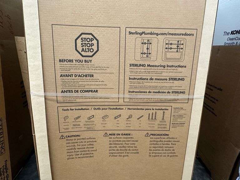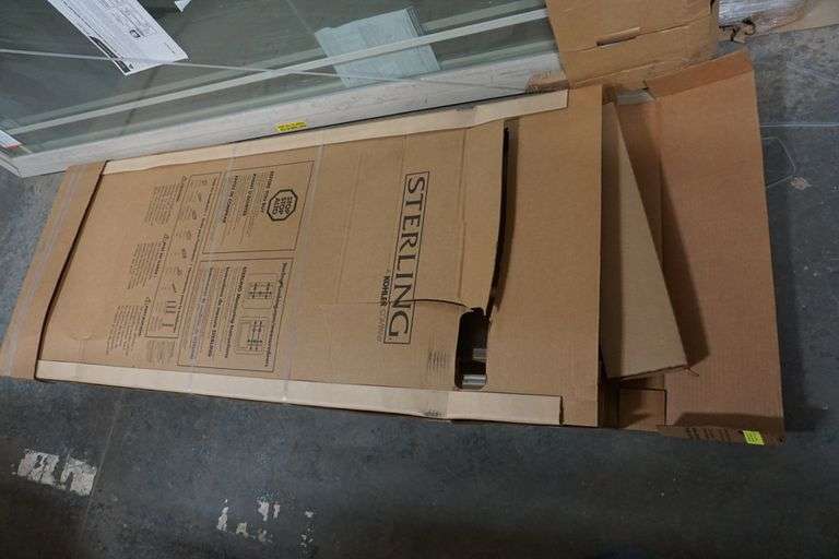 Kohler Deluxe Framed Sliding Shower Door. Made by Sterling, 70"x46 1/2" With 1/8" thick Pebbled glass, silver frame finish. Model #5970-46S. Grade: 1st Quality Weight: x. Sold by: Door. Sold as: Price x Quantity.