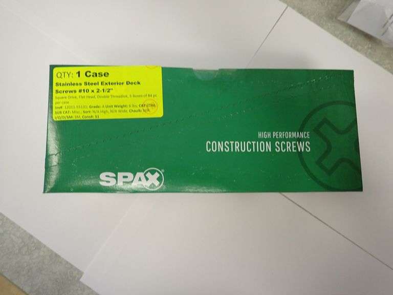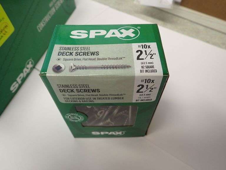 Stainless Steel Exterior Deck Screws #10 x 2 1/2". Square Drive, Flat Head, Double Threadlocks, 5 Boxes of 84 Pieces per Case, Grade: A Weight: 6. Sold by: Case. Sold as: Price x Quantity.