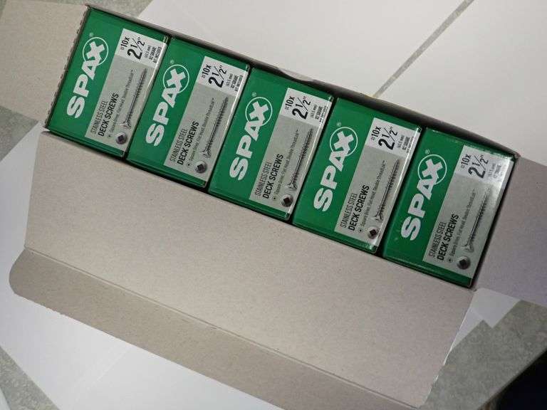 Stainless Steel Exterior Deck Screws #10 x 2 1/2". Square Drive, Flat Head, Double Threadlocks, 5 Boxes of 84 Pieces per Case, Grade: A Weight: 6. Sold by: Case. Sold as: Price x Quantity.