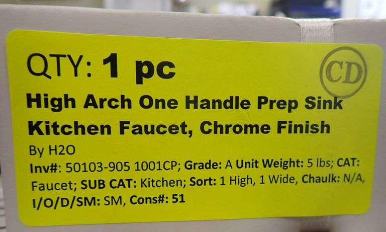 High Arch One Handle Prep Sink Kitchen Faucet, Chrome Finish. By H20, Grade: A Weight: 5. Sold by: Piece. Sold as: Price x Quantity.