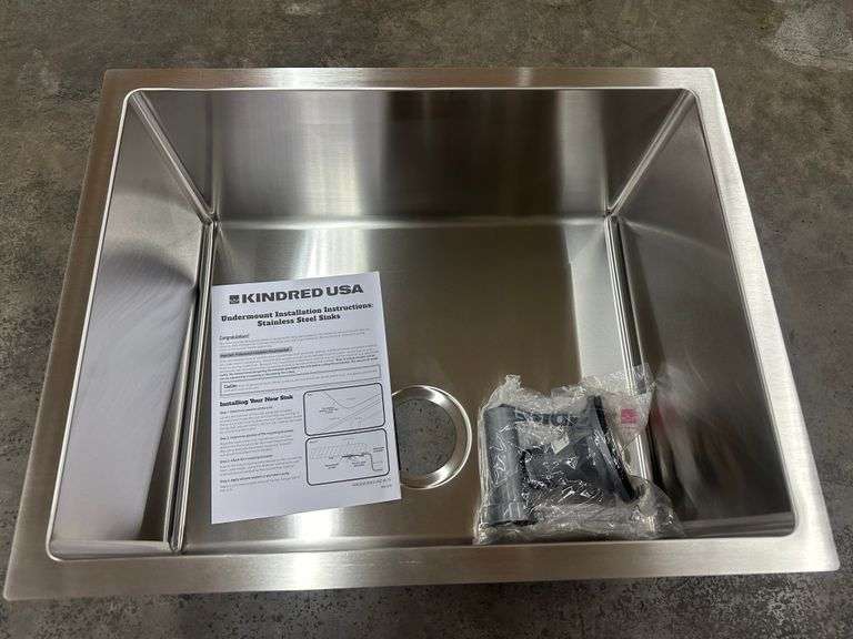 Professional Stainless Steel Single Bowl Sink. By Kindred, 18 Guage 23"x18"x10", Undermount, Grade: A Weight: 30. Sold by: Piece. Sold as: Price x Quantity.