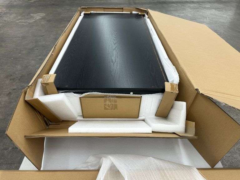 Black Desk with White Drawer Patterns. By Corliving, Ellison Entryway Desk, 60"H, 41"W, Grade: A Weight: 24. Sold by: Piece. Sold as: Price x Quantity.