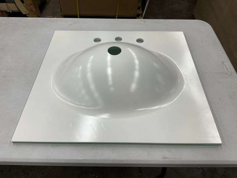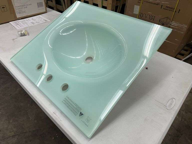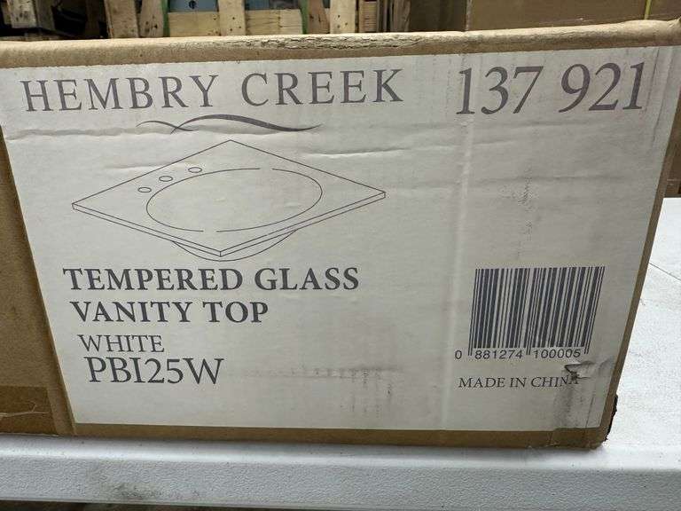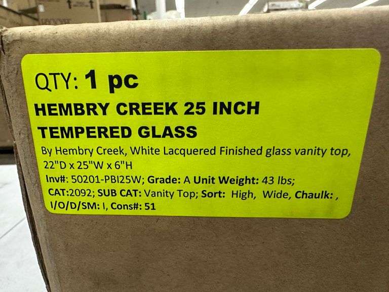 Hembry Creek 25" Tempered Glass Vanity Top. By Hembry Creek, White Lacquered Finished Glass Vanity Top, 22"Dx25"Wx6"H Grade: A Weight: 43. Sold by: Piece. Sold as: Price x Quantity.