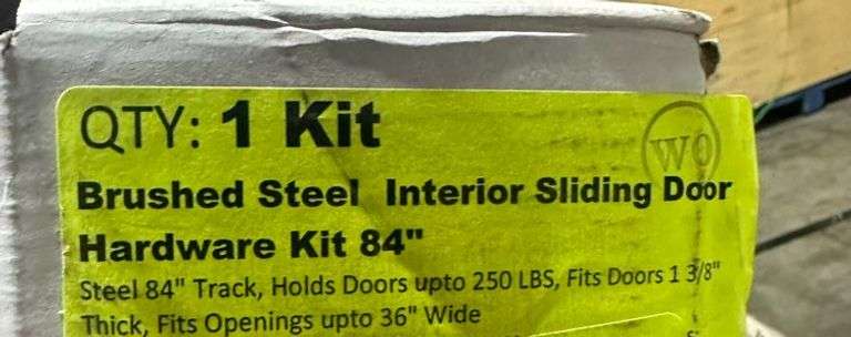 Brushed Steel Interior Sliding Door Hardware Kit 84". Steel 84" Track, Holds Doors upto 250 LBS, Fits Doors 1 3/8" Thick, Fits Openings upto 36" Wide, Grade: New Weight: 20. Sold by: Kit. Sold as: Price x Quantity.