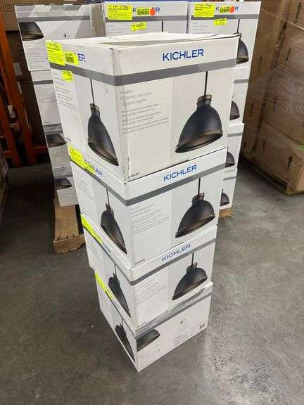 Single Light Textured Ceramic Pendant Light. By: Kichler, Aged Faux Wood Trim, 13"x9.4", With 12" Rod and 24" Chain, Requires 1 Medium Base Type A Bulb, Grade: A Weight: 35. Sold by: Piece. Sold as: Price x Quantity.