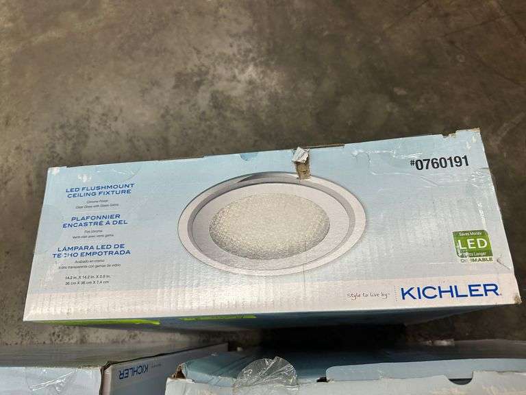 Single Light Chrome LED Flushmount Ceiling Light. By: Kichler, Clear Glass with Glass Gems, 14.2"x14.2"x2.9", Grade: A Weight: 20. Sold by: Piece. Sold as: Price x Quantity.