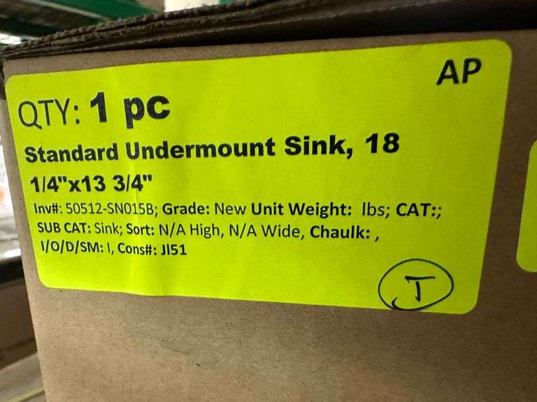 Standard Undermount Sink 18 1/4"x13 3/4". Grade: New Weight: x. Sold by: Piece. Sold as: Price x Quantity.
