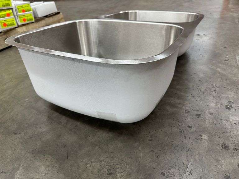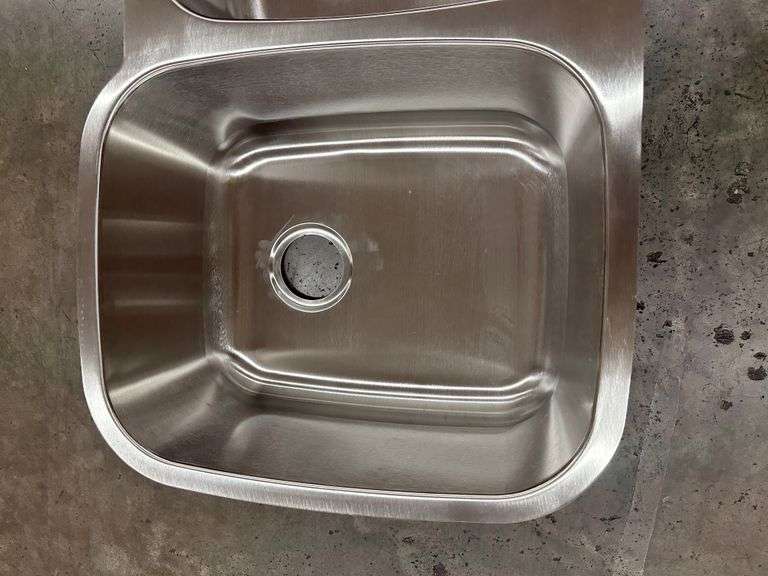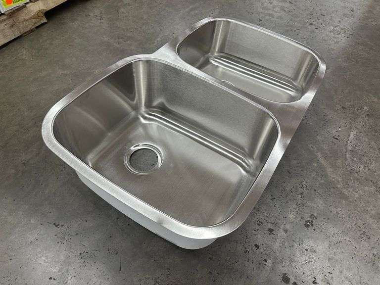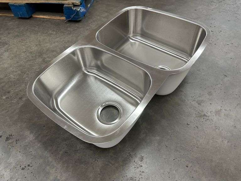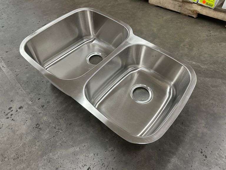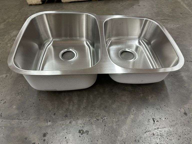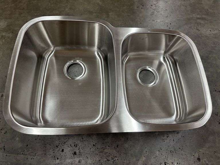 Stainless Steel Double Bowl Sink 32 1/4"x20 3/4 x9". By Karran, Undermount, Bowl 1-17 5/8" x 20 5/8"x 8 1/2", Bowl 2-18 1/2" x15 5/8 x6 1/2" Weight: 15. Sold by: Piece. Sold as: Price x Quantity.