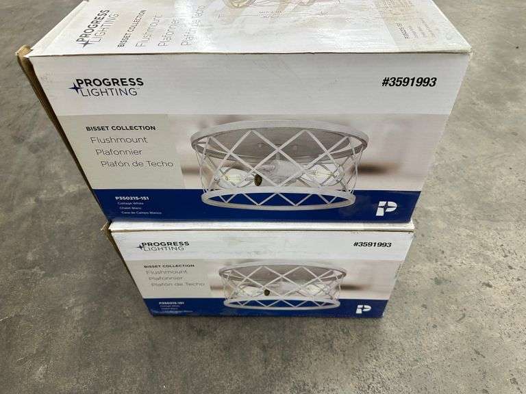 Cottage White 2 Light Flush Mount Lighting 13 7/8"x7 3/8" (2-Pack). By Progress Lighting, Bisset Collection, 2 Pieces, Grade: 1st Weight: x. Sold by: Piece. Sold as: Price x Quantity.