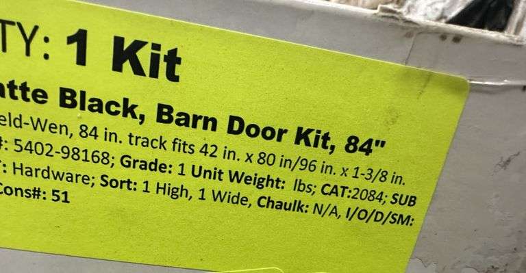 Matte Black Barn Door Kit 84". By Jeld-Wen, 84 Inch Track Fits 42"x80"/96"x1 3/8", Grade: 1 Weight: x. Sold by: Kit. Sold as: Price x Quantity.
