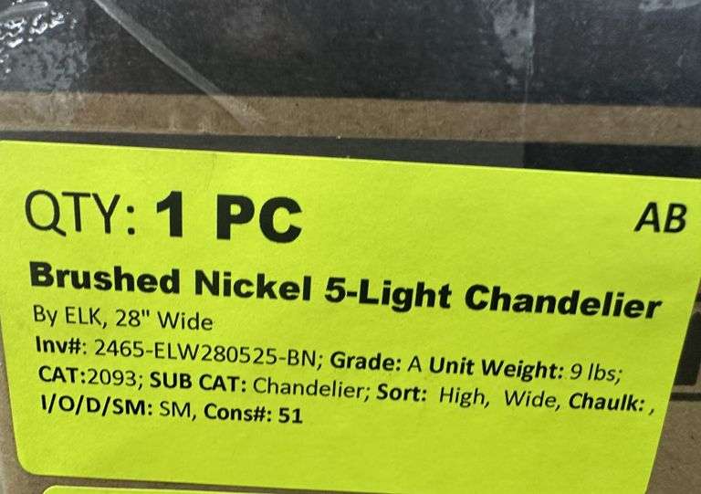 AR 28" Wide 5-Light Chandelier. By ELK, 5 Light, 28"Wx53"-88"H, Brushed Nickel, Grade: A Weight: 7. Sold by: Piece. Sold as: Price x Quantity.