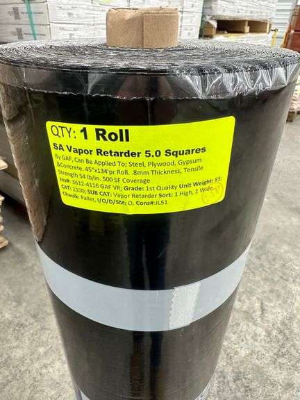 SA Vapor Retarder 5.0 Squares. By GAF, Can be applied to Steel, Plywood, Gypsum & Concrete. 45"x134' per roll. .8mm Thickness, Tensile Strength 54lb/in 500 sf coverage Grade: 1st Quality Weight: 85. Sold by: Roll. Sold as: Price x Quantity.
