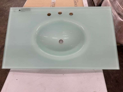 Light Teal, 37 Inch Tempered Glass Top Vanity Top. By Hembry Creek, Light Teal Tempered Glass, 37"Wx22"Dx1"H, Grade: A Weight: 59. Sold by: Piece. Sold as: Price x Quantity.