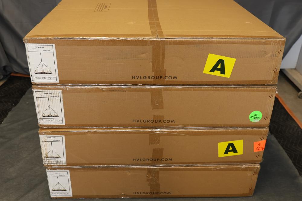 Items include Hudson Valley Lighting Polished Nickel Chandelier; Hudson Valley Pendant Light; American Craftsman 30 x 54 Double-Hung Vinyl Window; Hudson Valley Lighting Smoke Glass Panels; Style Selections Seacrest Dining Table; Nalle Energy Saving Ventilation Fan; Allen + Roth Surface Mount Framed Medicine Cabinet; Industrial-Grade Wall-Mounted Outdoor Light Fixture; Electric Shoe Polisher; Orbit B-hyve Smart WiFi Hose Faucet Timer; Hudson Valley SE-L125 Drum Lamp Shades; Kichler 15211-VGT Landscape Lighting Fixture; Moen GXP33C Garbage Disposal; Style Selections Log Rack; Stainless Steel Sink Basin; Cosmo 30-Inch Under Cabinet Range Hood; Sunlite LED Decorative Ceiling Fixture & more. Items are located in Pleasant Valley, NY.