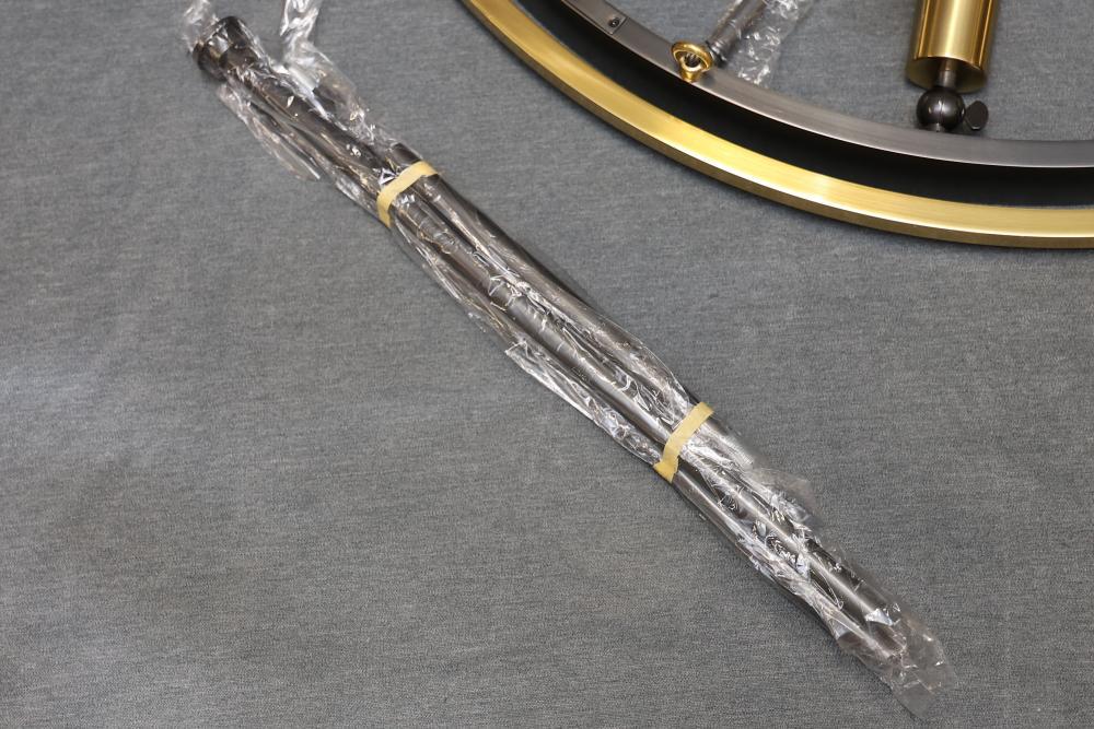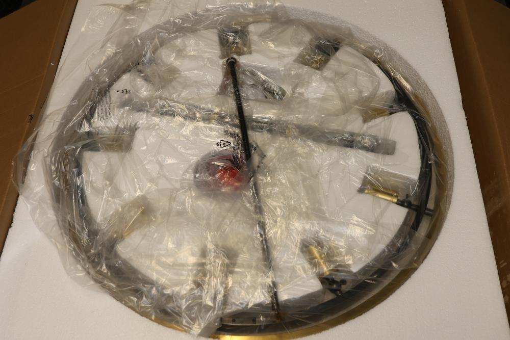 Hudson Valley Pendant Light Model 2732-AOB in Aged Old Bronze Finish. Includes a circular frame with multiple brass lamp sockets, rods, mounting hardware, and instructions. Packaged in original boxes with protective coverings. The item remains in an unassembled state. Pickup only.