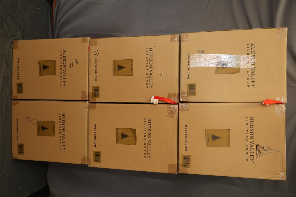 Items include Hudson Valley Lighting Polished Nickel Chandelier; Hudson Valley Pendant Light; American Craftsman 30 x 54 Double-Hung Vinyl Window; Hudson Valley Lighting Smoke Glass Panels; Style Selections Seacrest Dining Table; Nalle Energy Saving Ventilation Fan; Allen + Roth Surface Mount Framed Medicine Cabinet; Industrial-Grade Wall-Mounted Outdoor Light Fixture; Electric Shoe Polisher; Orbit B-hyve Smart WiFi Hose Faucet Timer; Hudson Valley SE-L125 Drum Lamp Shades; Kichler 15211-VGT Landscape Lighting Fixture; Moen GXP33C Garbage Disposal; Style Selections Log Rack; Stainless Steel Sink Basin; Cosmo 30-Inch Under Cabinet Range Hood; Sunlite LED Decorative Ceiling Fixture & more. Items are located in Pleasant Valley, NY.