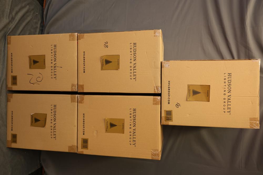Items include Hudson Valley Lighting Polished Nickel Chandelier; Hudson Valley Pendant Light; American Craftsman 30 x 54 Double-Hung Vinyl Window; Hudson Valley Lighting Smoke Glass Panels; Style Selections Seacrest Dining Table; Nalle Energy Saving Ventilation Fan; Allen + Roth Surface Mount Framed Medicine Cabinet; Industrial-Grade Wall-Mounted Outdoor Light Fixture; Electric Shoe Polisher; Orbit B-hyve Smart WiFi Hose Faucet Timer; Hudson Valley SE-L125 Drum Lamp Shades; Kichler 15211-VGT Landscape Lighting Fixture; Moen GXP33C Garbage Disposal; Style Selections Log Rack; Stainless Steel Sink Basin; Cosmo 30-Inch Under Cabinet Range Hood; Sunlite LED Decorative Ceiling Fixture & more. Items are located in Pleasant Valley, NY.