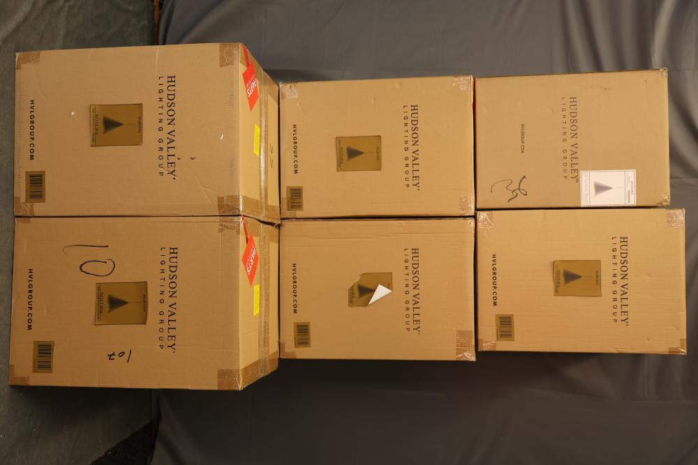 Items include Hudson Valley Lighting Polished Nickel Chandelier; Hudson Valley Pendant Light; American Craftsman 30 x 54 Double-Hung Vinyl Window; Hudson Valley Lighting Smoke Glass Panels; Style Selections Seacrest Dining Table; Nalle Energy Saving Ventilation Fan; Allen + Roth Surface Mount Framed Medicine Cabinet; Industrial-Grade Wall-Mounted Outdoor Light Fixture; Electric Shoe Polisher; Orbit B-hyve Smart WiFi Hose Faucet Timer; Hudson Valley SE-L125 Drum Lamp Shades; Kichler 15211-VGT Landscape Lighting Fixture; Moen GXP33C Garbage Disposal; Style Selections Log Rack; Stainless Steel Sink Basin; Cosmo 30-Inch Under Cabinet Range Hood; Sunlite LED Decorative Ceiling Fixture & more. Items are located in Pleasant Valley, NY.