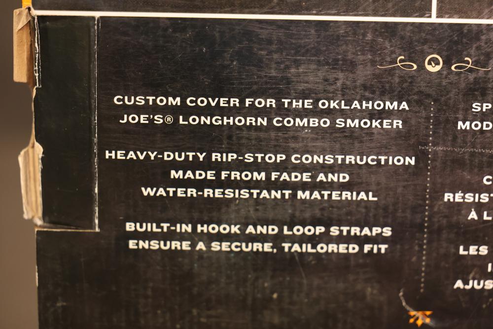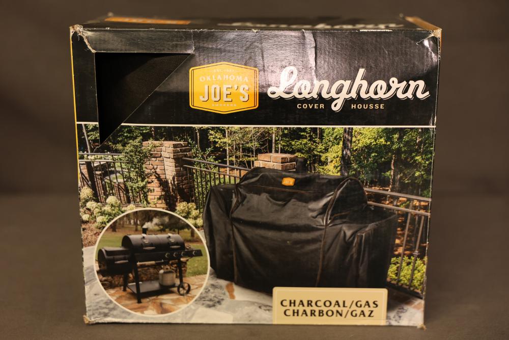 Oklahoma Joe's Longhorn Charcoal/Gas Smoker Covers, Two Pieces. Custom covers designed for the Oklahoma Joe's Longhorn Combo Smoker. Made from heavy-duty rip-stop material that is fade and water-resistant. Features built-in hook-and-loop straps for a secure, tailored fit. Pickup only.