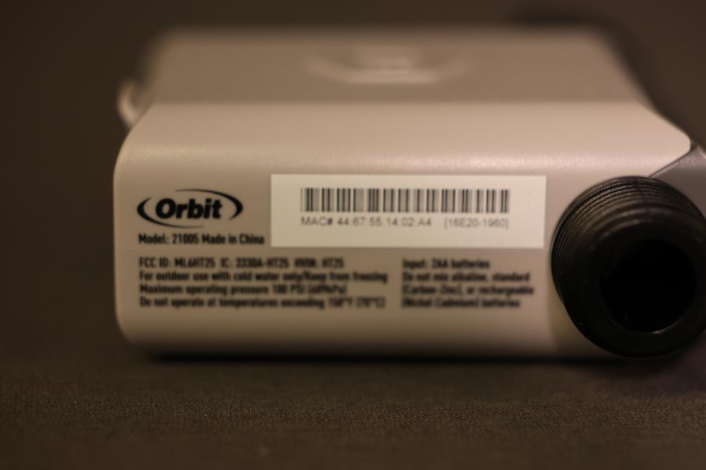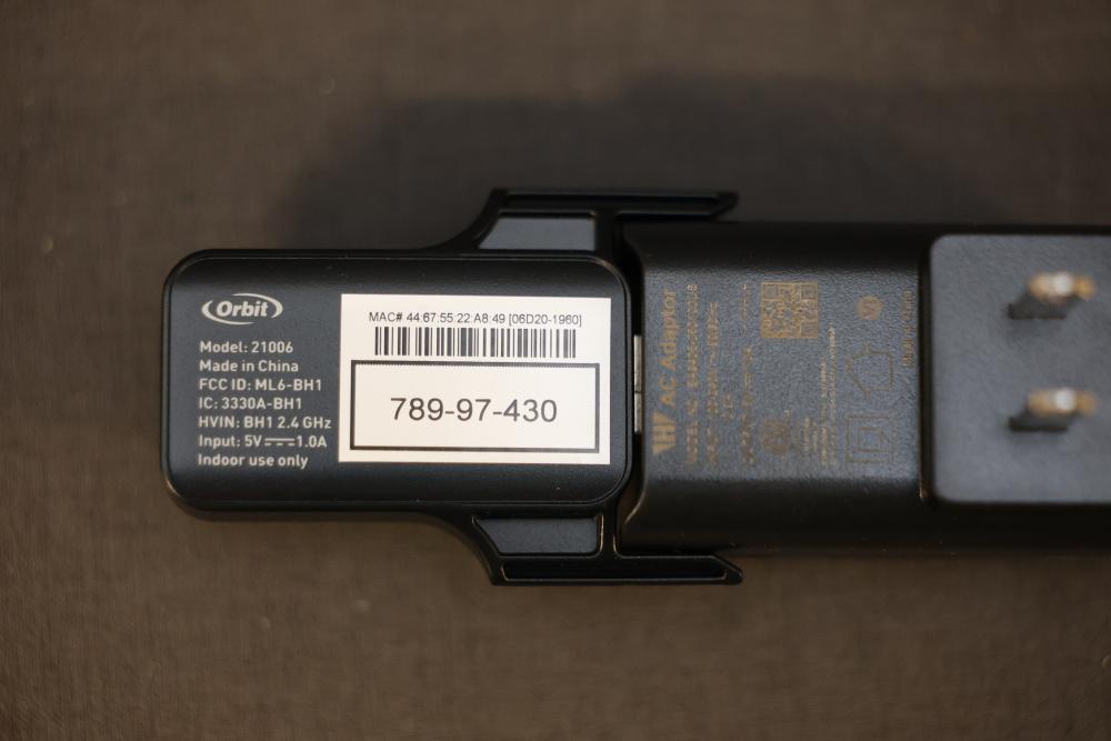 Orbit B-hyve Smart WiFi Hose Faucet Timer with Hub. Includes faucet timer, hub, and quick start guide. Features weather optimization, manual watering, Bluetooth and WiFi connectivity, app control, and auto-scheduling. For indoor use only. Pickup only.