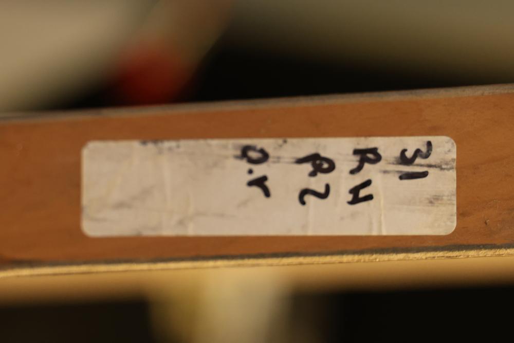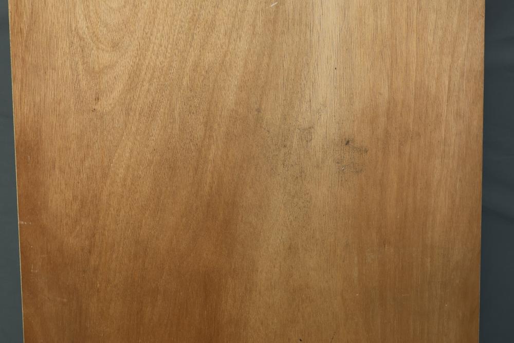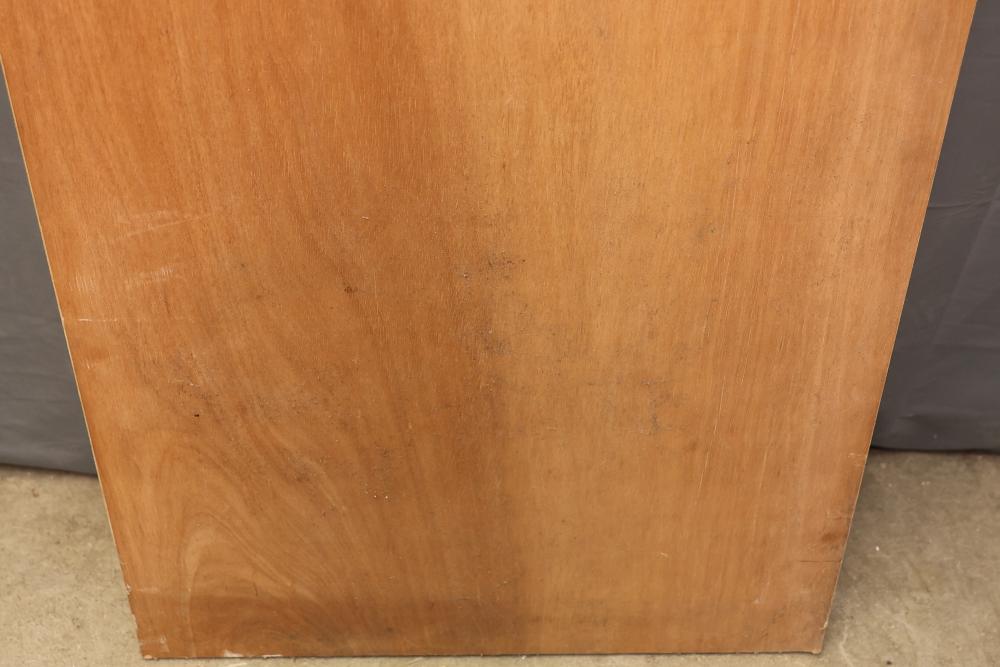 Solid Wood Interior Door with Pre-Drilled Handle Hole. Features a smooth wooden finish on both sides and a handle hole pre-drilled on one side. Presents minor wear including marks and surface scratches. Pickup only.