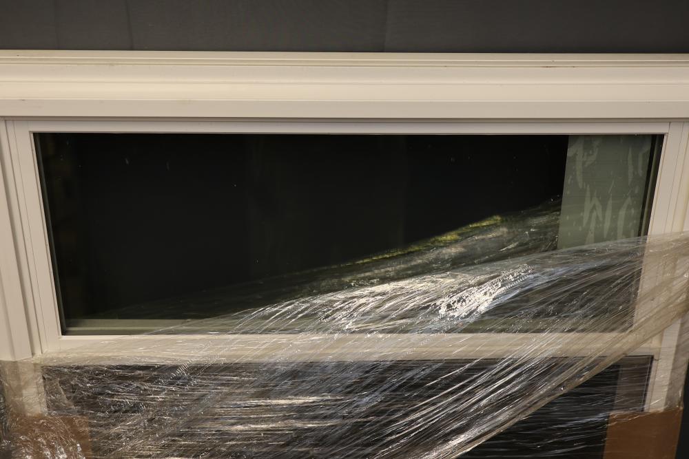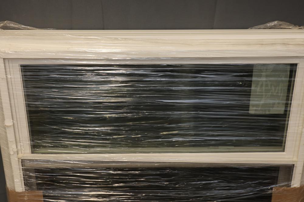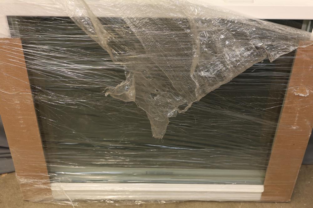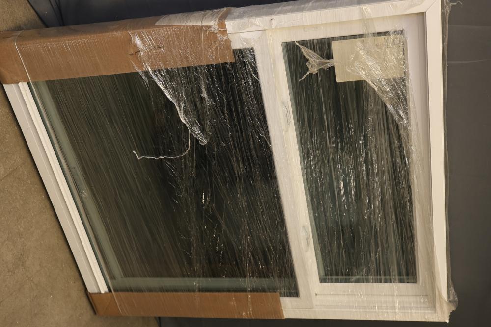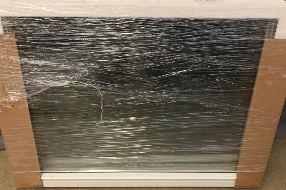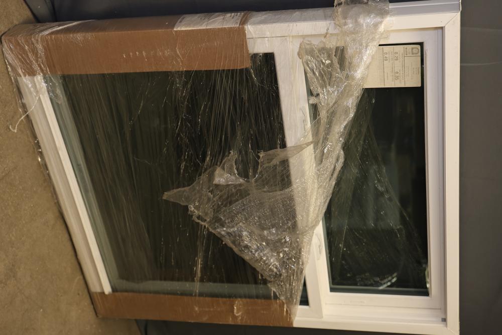 Vinylmax Vertical Slider Windows with Energy Performance Ratings. Includes a set of windows with a white frame design and transparent glass construction. The label specifies U-Factor of 0.29, Solar Heat Gain Coefficient of 0.35, and Visible Transmittance of 0.49 for optimal energy efficiency. Packaged with protective wrapping. Pickup only.