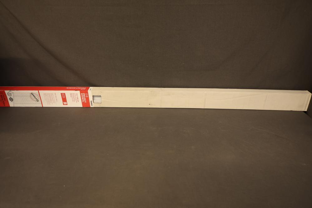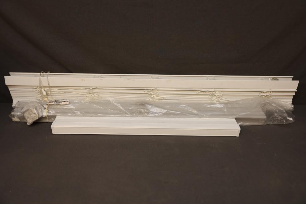 Project Source Cordless Vinyl Mini Blind, 58 in x 64 in, White. Designed for light filtering, this blind comes with a cordless feature for safety and convenience. Dimensions are 58 inches wide and 64 inches long, with an actual width of 57.5 inches. Pickup only.