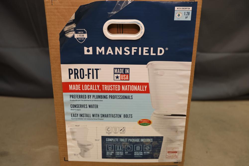 Mansfield Pro-Fit 5135 CTK and Alto Tank 3173 toilet components. Includes a 1.28 GPF/4.8 LPF white Pro-Fit toilet bowl with proven reliability, easy installation features, and outstanding protection. Also includes the Alto Tank 3173 with a SmartFasten tank-to-bowl connection. Components are new in the original packaging. Pickup only.