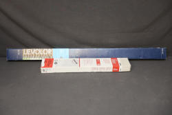 Levolor Trim+Go Cellular Shade in Toffee color, room darkening, measuring 48 x 72 inches with a trim width of 36 inches. Includes Project Source Cordless Vinyl Mini Blind in white, sized for a 23 x 72-inch opening with an actual width of 22.5 inches. Both items are new in original packaging. Pickup only.