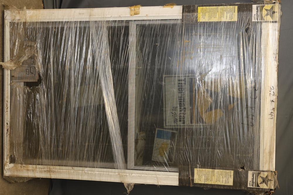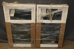 Set of 2 Vinylmax vertical slider windows measuring 24 x 38 inches. Constructed with energy-efficient features, including a U-Factor rating of 0.29 and Solar Heat Gain Coefficient of 0.35, as indicated on the label. The item is wrapped in protective packaging. Pickup only.