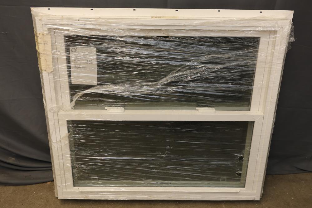 Vinylmax DH-Solaris Vertical Slider Window with Energy Ratings featuring a U-Factor of 0.29, Solar Heat Gain Coefficient of 0.37, and Visible Transmittance of 0.51. 36 x 32 inches. Includes a durable frame and clear protective wrapping. Pickup only.