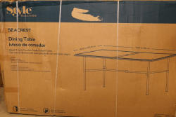 Style Selections Seacrest Dining Table With Black Powder-Coated Steel Frame. New and in original packaging, the table measures approximately 70.87 inches in length, 42.32 inches in width, and 29.72 inches in height when assembled. Pickup only.