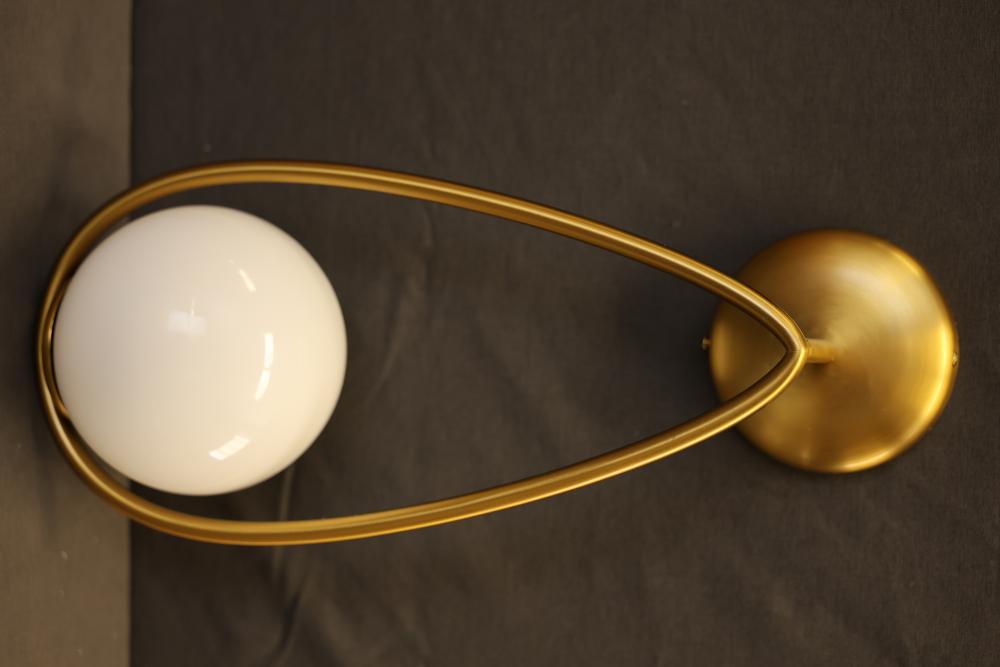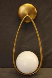 Generation Lighting AEW1011BBS One-Light Sconce. Brushed brass finish with a white glass globe. Lamping requirement: 1 G9 T4 bulb, 4.5 watts. Includes assembly instructions and original packaging.