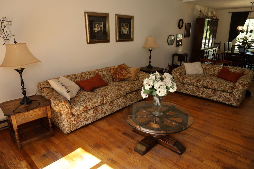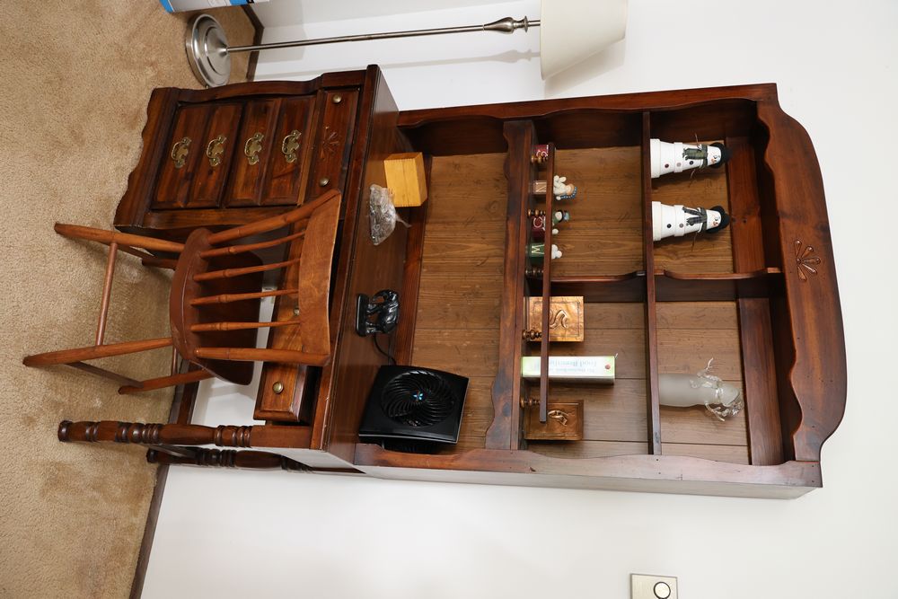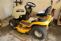 items include floral upholstered sofa set; rustic violin in case; Cub Cadet LT1042 Hydrostatic Drive lawn tractor; dinnerware/silver items by Lenox, Limoges & Oxford; Heywood-Wakefield bedroom set; Rockwell drill press; vintage metal ware; brass scale; wooden spinning wheel; Ridgid wet/dry vac; Werner 6' ladder; Samsung 55" LED HDTV; outdoor garden/patio furniture/decorations; MasterCraft jig saw living room furniture & more. Items are located in Hopewell Junction, NY.
