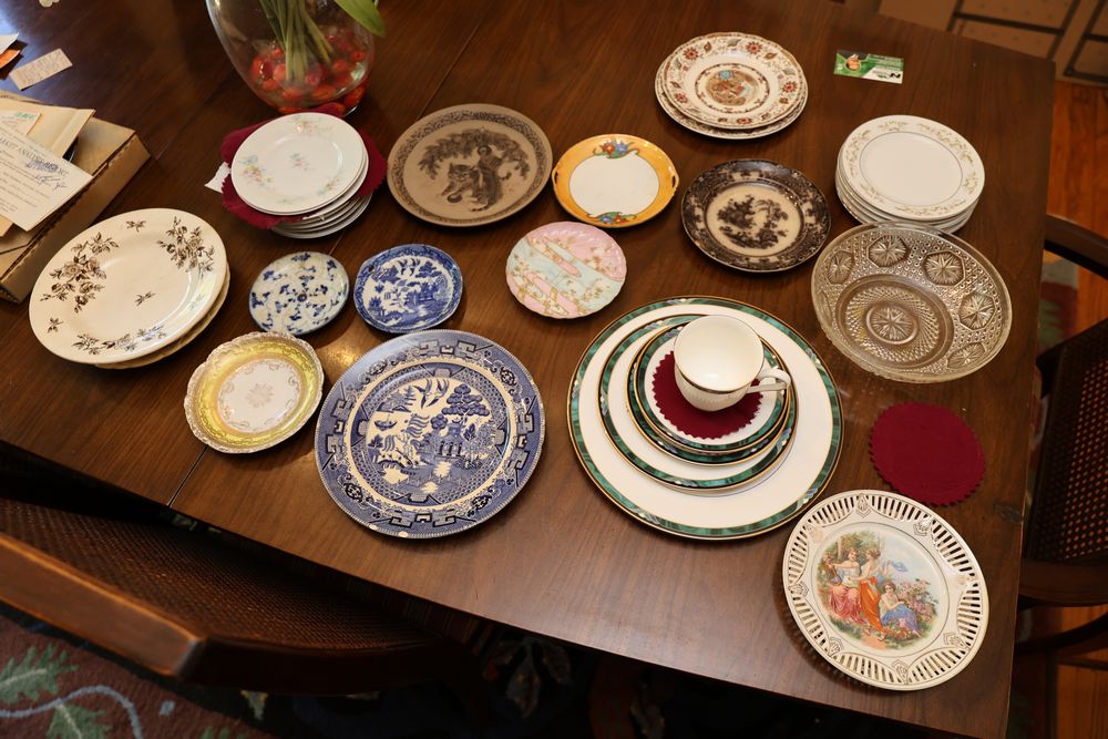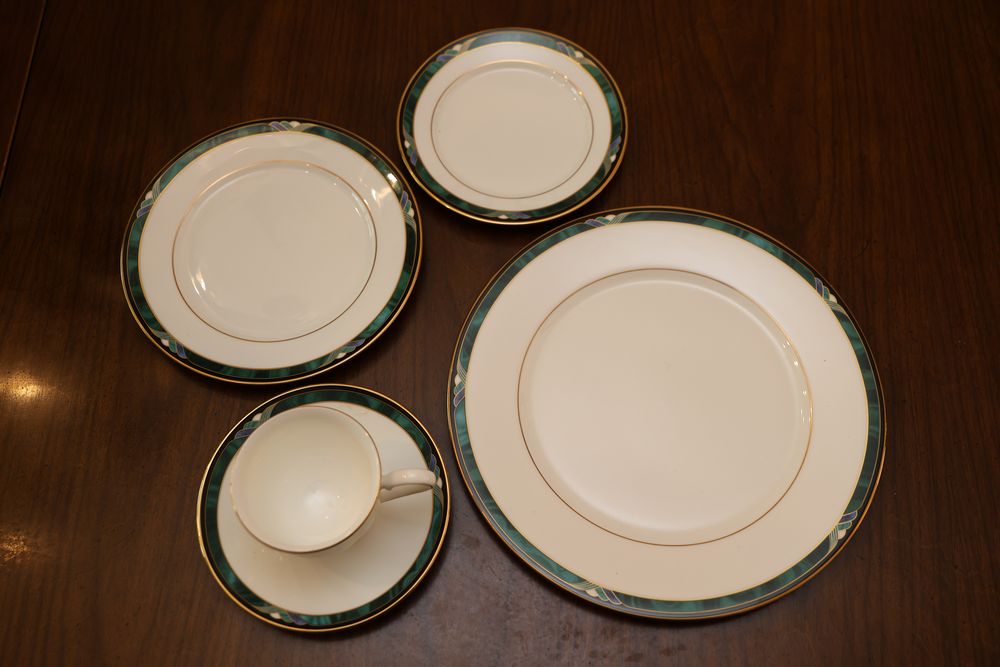 Extensive Assortment of Dinnerware and Silver Items. Includes various porcelain and ceramic dinnerware stamped with makers such as Lenox, Limoges, and Oxford. Additional items include multiple silver pieces, such as serving trays and cups, some with makers marks. Excludes glass transparent glass vase with floral paintings. Does not include items from other lots. Buyer is responsible for all materials and help necessary for safe and proper removal. Buyer must take all. Pickup only.