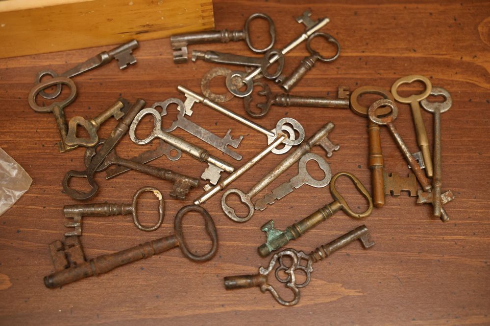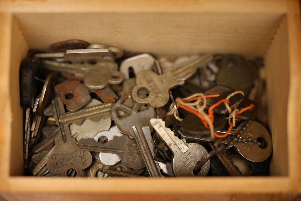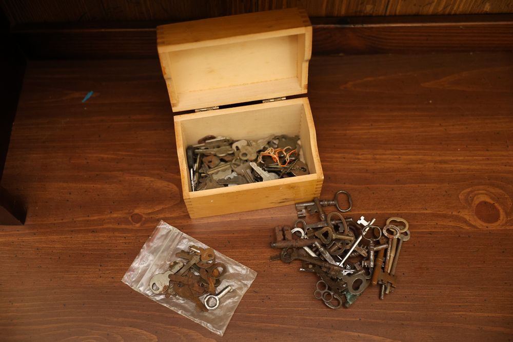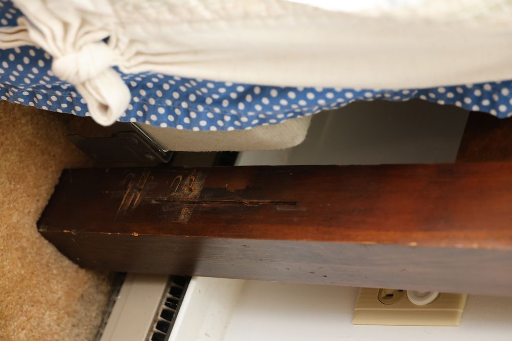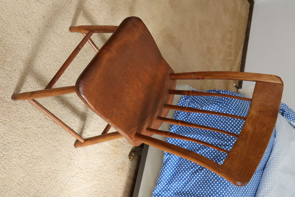Wooden Furniture Set with Key Collection and Floor Lamp. Includes a twin-sized headboard and twin frame with spindle design, a matching bedside table with three drawers, a chest of drawers featuring multiple compartments 44"W x 18"D, a desk with detachable hutch showcasing shelves and drawers 44"W x 17.5"D x 75"H, a wooden chair, and a metal floor lamp with a white fabric shade. Does not include items from other lots. Buyer is responsible for all materials and help necessary for safe and proper removal. Pickup only.