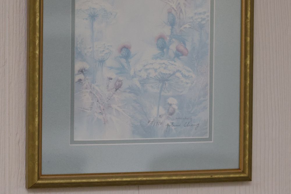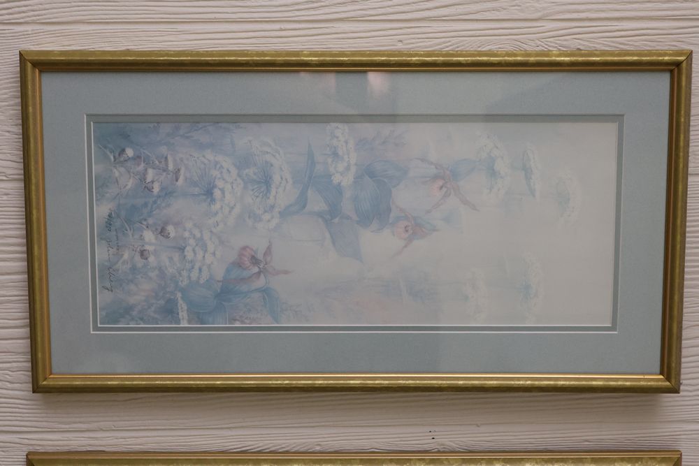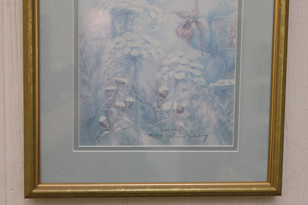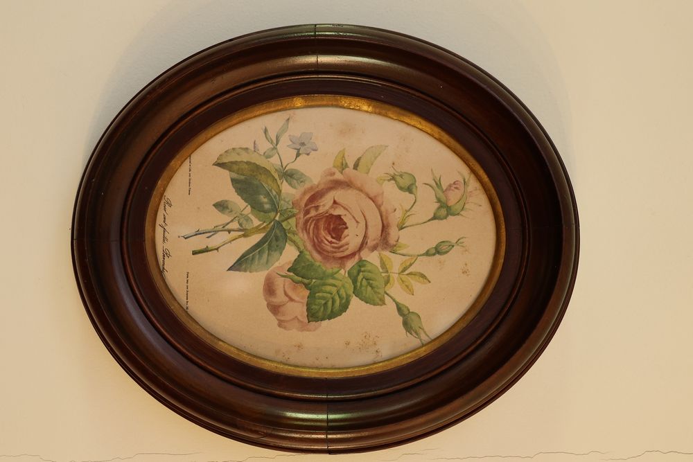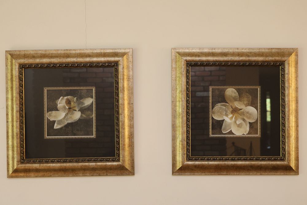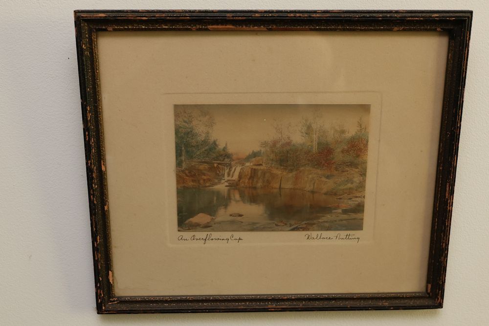 Wall Art With Mirrors Including Framed Prints and Paintings. This includes framed mirrors, art prints attributed to Wallace Nutting, landscapes, floral prints, and geometric designs. Frames feature materials like wood and metal, with varying styles and conditions. Buyer must take all. Pickup only.