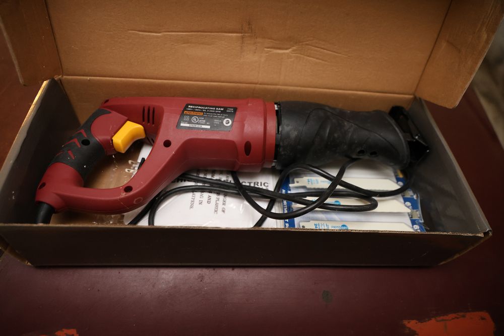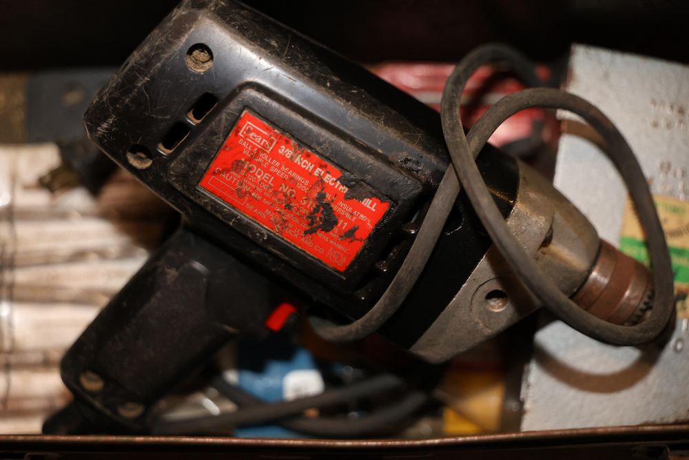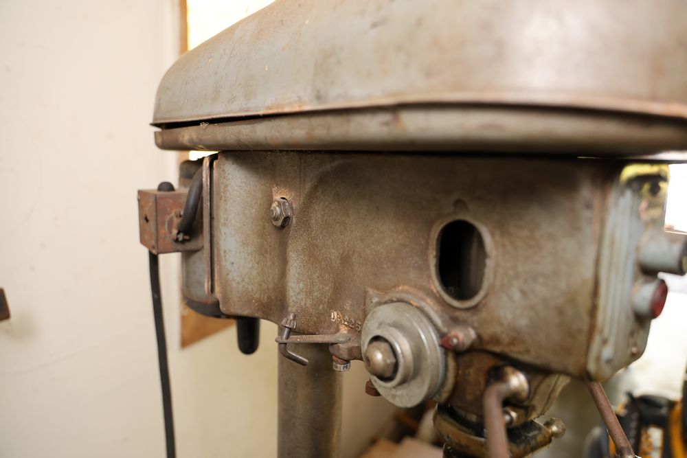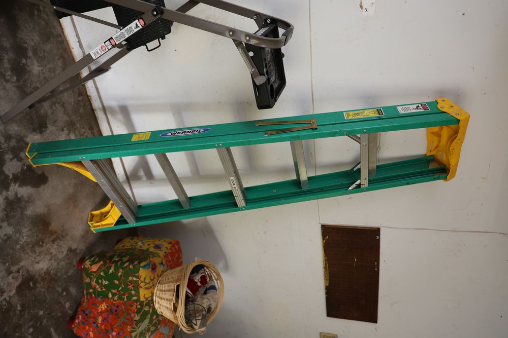 Workshop Tools and Equipment Assortment Including Sears Drill, Rockwell Drill Press, and RIDGID Wet/Dry Vac. Includes Sears 3/8-inch Electric Drill (Model 315 11141), Rockwell Delta Drill Press (Serial 113-5849), RIDGID 4.25 HP 12-Gallon Wet/Dry Vacuum, Werner 6-Foot Ladder (Model 5906), and additional hand tools, saws, and accessories. Includes reciprocating saw (Item 65670), MasterCraft Jig Saw (Model 100), Black & Decker TR1600 Hedge Trimmer, and other miscellaneous workshop items. Seller reports all tools were functional when last used. Does not include items from other lots. Buyer is responsible for all materials and help necessary for safe and proper removal. Buyer must take all. Pickup only.