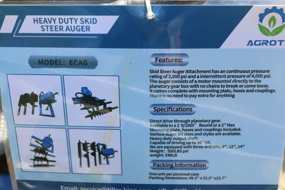 Items include AGT: AGT Auger model SSECAG-Y with auger bits, portable sawmill, mini excavator, crawler loader, CFG industrial TK35R mini skid steer loader; GIYI skid steer mulcher, trencher, forks, side shift fork attachment, stump grinder, post driver, breaker, 4-in-1 breaker, grapple, mixing bucket, plate grabber, auger, land leveler; MIVA: 12" auger for mini excavators, excavator rake, excavator ripper, hydraulic wood drill; SKLP mini excavator rubber track; self-leveling rotary laser level; 14' bi-parting wrought iron gate; 40' high cube multi-container; Wolverine 72" skid steer brush cutter, grapple bucket, land leveler & more. Items are located in Pleasant Valley, NY. Preview is highly recommended!