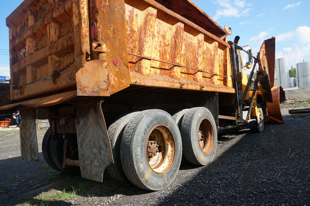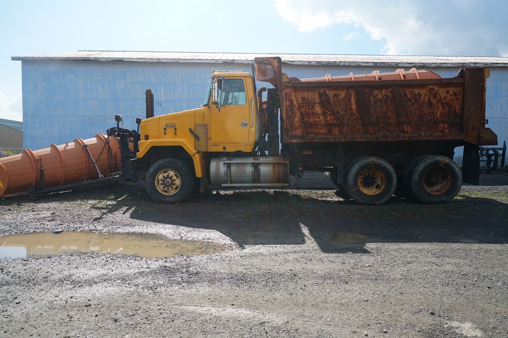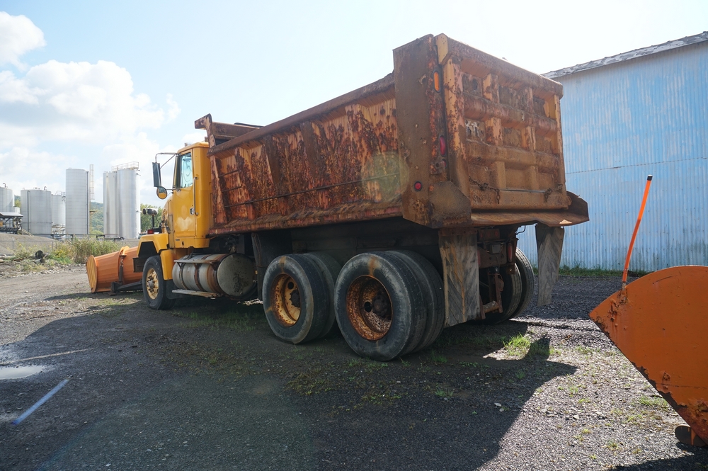 2000 Volvo Plow/Dump Body Truck; VIN: 4V5SC2JH6YN520850; Odometer Reads:184,054.5 Brakes: Air, Engine Model: N14, Cummins Diesel inline 6 cyl, Rust, Includes Front and Wing plow, plus extra plow. Seller States; Used as salt truck. Runs and Drives. Includes: keys, title
