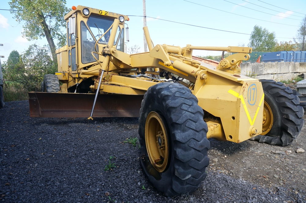 Austin Western G2 Power Diesel Grader (~1964); for parts or repair, Jasper engine and transmission model: V504, inoperable, rotted tires, Seller States; Engine ran when it was parked. Hydraulics are inoperable. Transmission is inoperable. Icludes Title, registration, keys.