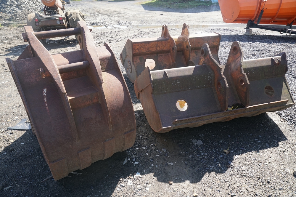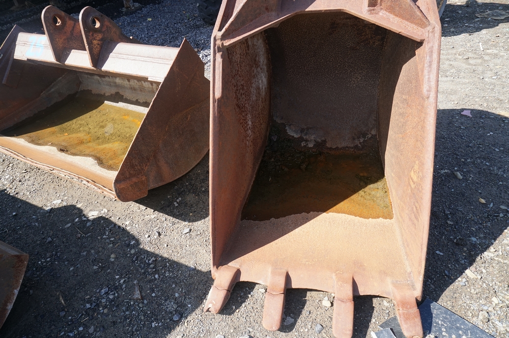 Three Drott Backhoe Buckets; two ditching buckets, one digging bucket. For excavator or Gradall. All three buckets sell for one price. Rust