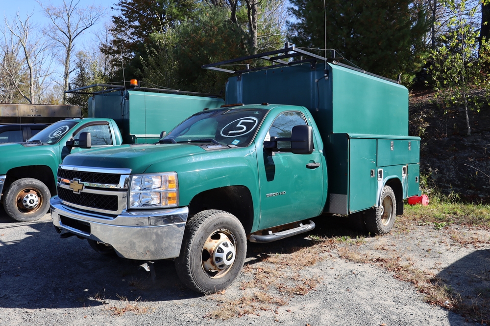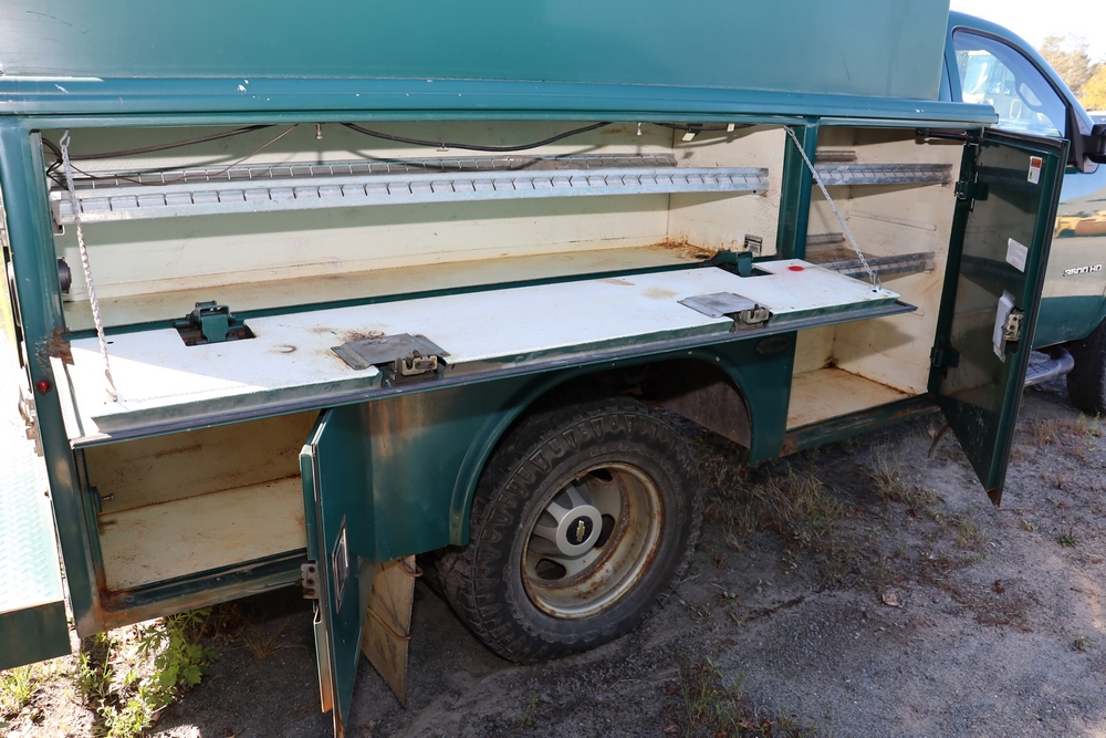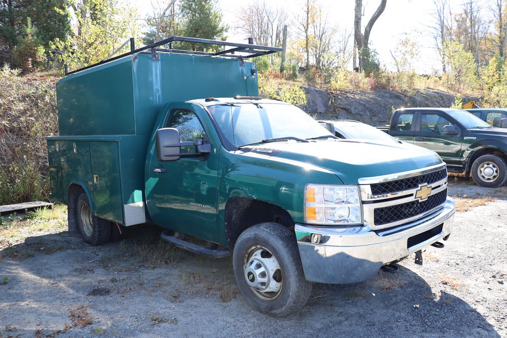 2012 Chevrolet Silverado K3500 6.0L Vortec Gas Engine, DRW, 6 Speed HD Automatic. 9’ Enclosed Utility body, 13,200 lbs. Rear Axle 3.73 Ratio Locking Diff. Tires LT235/80R17. 70,889 Miles. Starts and Moves, Poor Shape has rust issues. VIN: 1GB3CZCG9CF228859 Asset Tag 41174