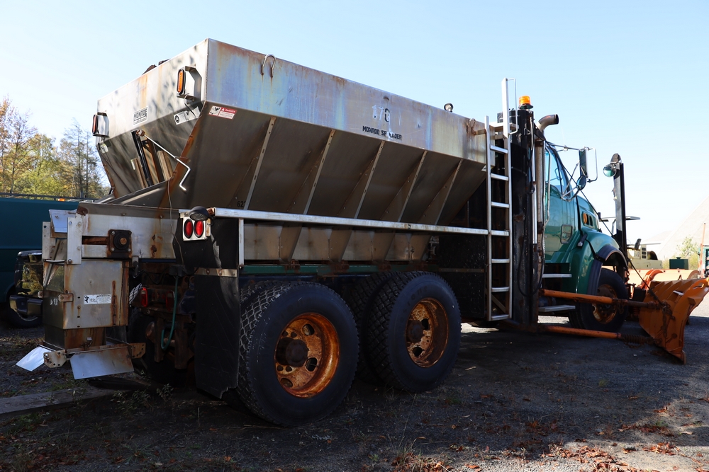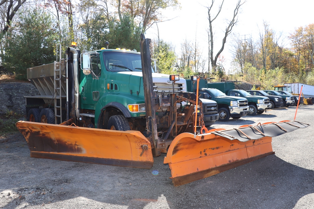2005 Sterling Model LT9511 Engine: Mercedes-Benz MBE 4000 6 Cyl 12.8L Diesel. Transmission: Eaton Fuller Model RT016908LL, Body has sander installed with Plow and Wing. Comes with 13’ Steel Dump Body. 64,000lbs. Front tires 315/80R22.5, Rear tires 11R24.5 127,506 Miles. Starts, has rust issues. VIN: 2FZHAZCV35AN73484, Asset Tag 18504