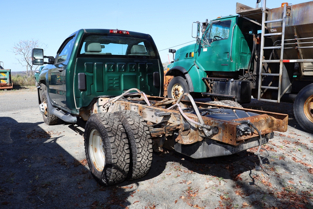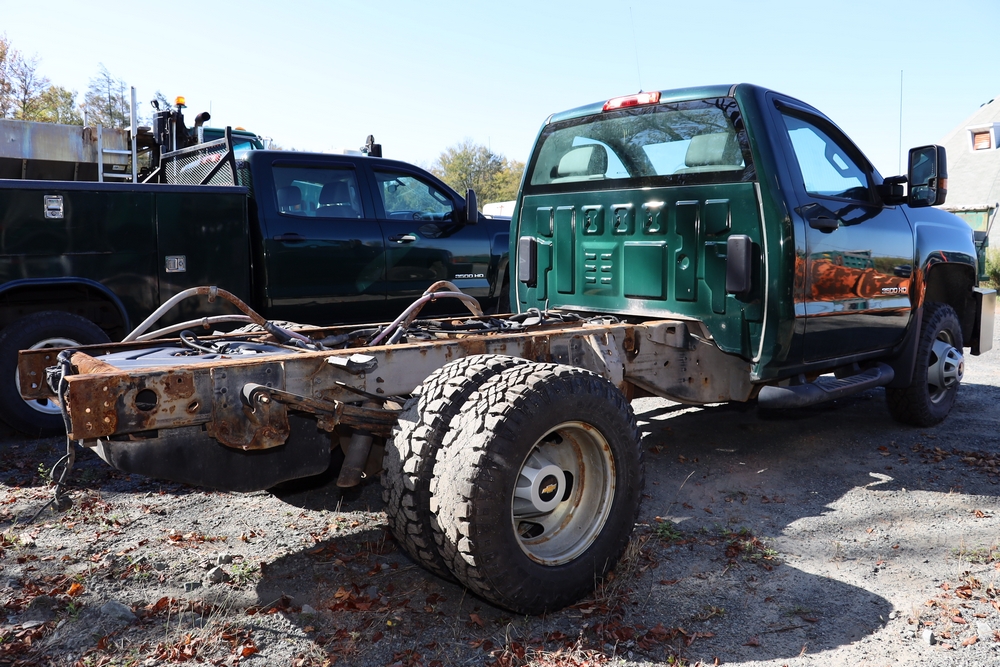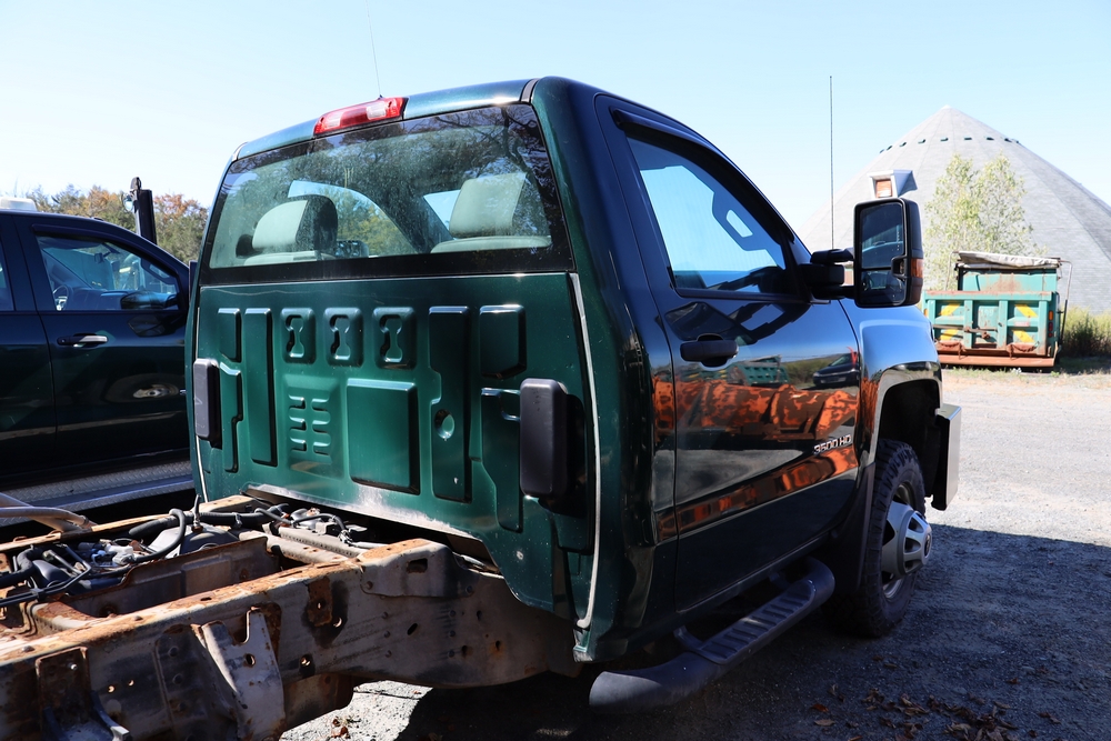2015 Chevrolet Silverado K3500 Regular Cab and chassis. Engine: 6.0L V8 Gas. Transmission: 6 speed Automatic, 4WD With duel rear wheels. 46,394 Miles. Tires LT235/80R17. Truck is in good shape. Starts and drives. VIN: 1GB3KYCGXFZ547154. Asset Tag 41276