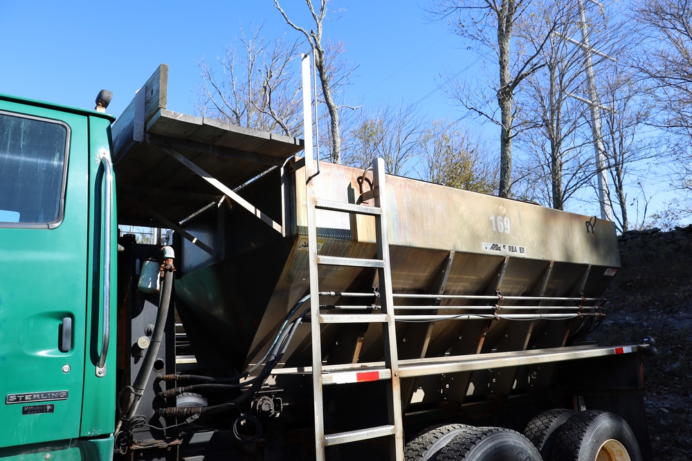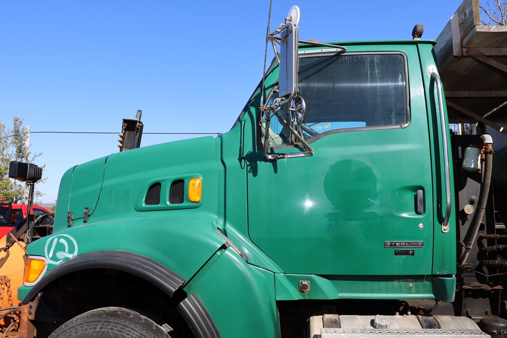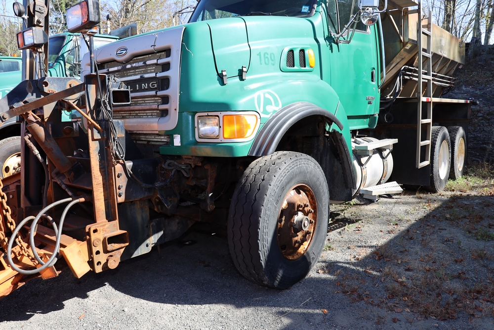 2005 Sterling Model LT9511 Engine: Mercedes-Benz MBE 4000 6 Cyl 12.8L Diesel. Transmission: Eaton Fuller Model RT016908LL, Body has sander installed with Plow and Wing. Comes with 13’ Steel Dump Body. 64,000lbs. Front tires 315/80R22.5, Rear tires 11R24.5 159,016 Miles. Starts and moves, has rust issues. VIN: 2FZHAZCV15AN73483, Asset Tag 18696