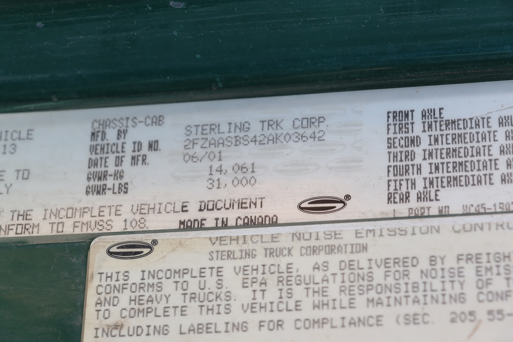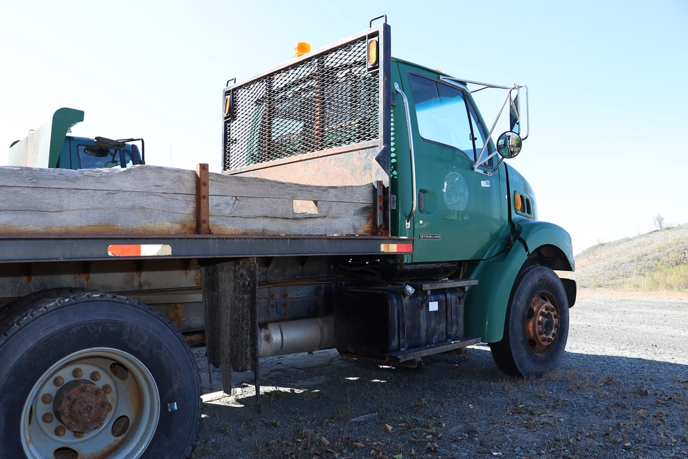 2002 Sterling Model L7500. Engine: Cummins ISC 240 6 Cyl Diesel. Transmission Fuller Model FS635A. Body: Single axle 12’ flatbed tilt. GVWR 31,000 lbs. Tires 11R22.5 Truck starts and moves, has rust issues. VIN: 2FZAASBS42AK03642. Asset Tag 18129