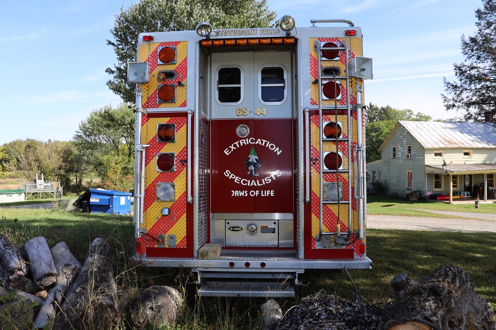 Items include 1990 GMC TopKick C7500 E-One Rescue Truck and Hurst rescue tools. Items are located in Stuyvesant Falls, NY.
