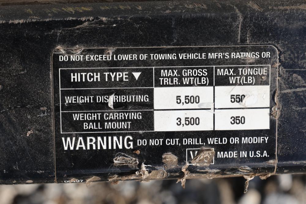 Towing Products Hitch Model 75054 With 2 Inch Square Receiver Opening, featuring a 38.5-inch length. Includes a maximum gross trailer weight capacity of 5,500 lbs with weight distribution and 3,500 lbs with weight carrying. The maximum tongue weight is 550 lbs with weight distribution and 350 lbs with weight carrying. Pickup only.