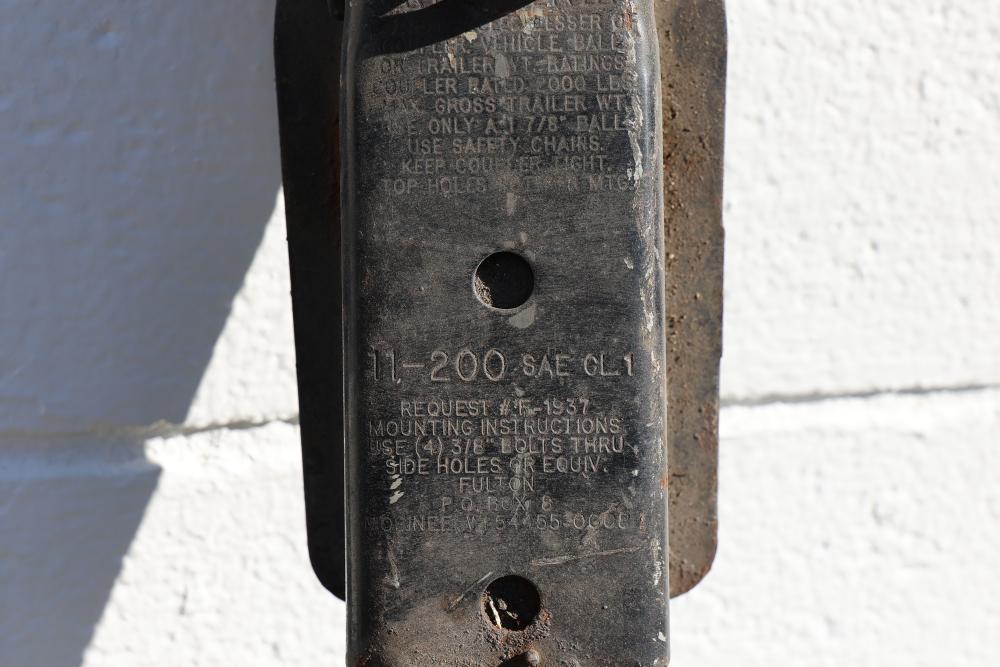 11-200 SAE CL1 Trailer Hitch with a 2 inch square receiver opening and 52 inches in length. Includes attached wheel assembly for support. Ideal for trailer applications. Pickup only.